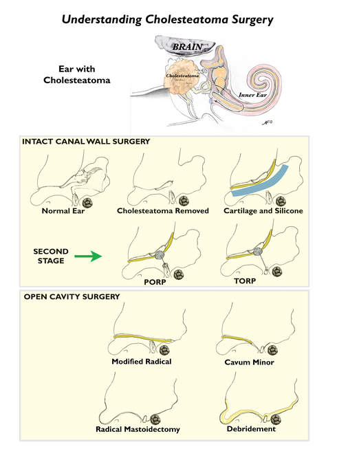 Below is a video demonstration of an intact canal wall first stage resection of a cholesteatoma. Due to the large size of this file, it may best be viewed from a computer rather than mobile phone. For the second stage technique, please refer to the section on ossiculoplasty.